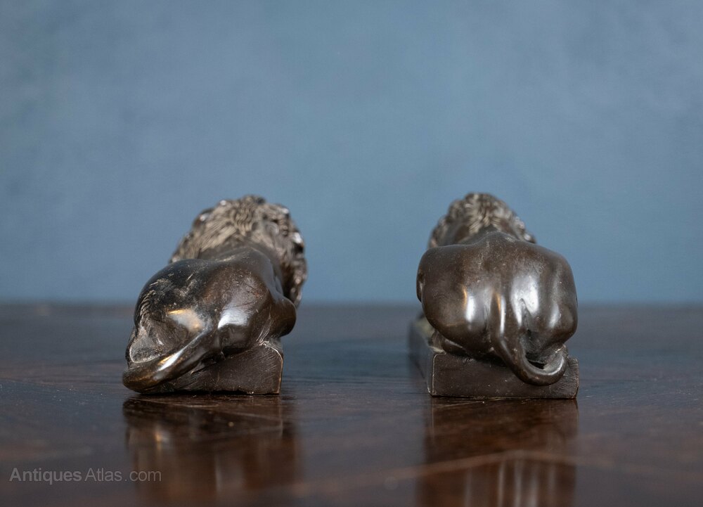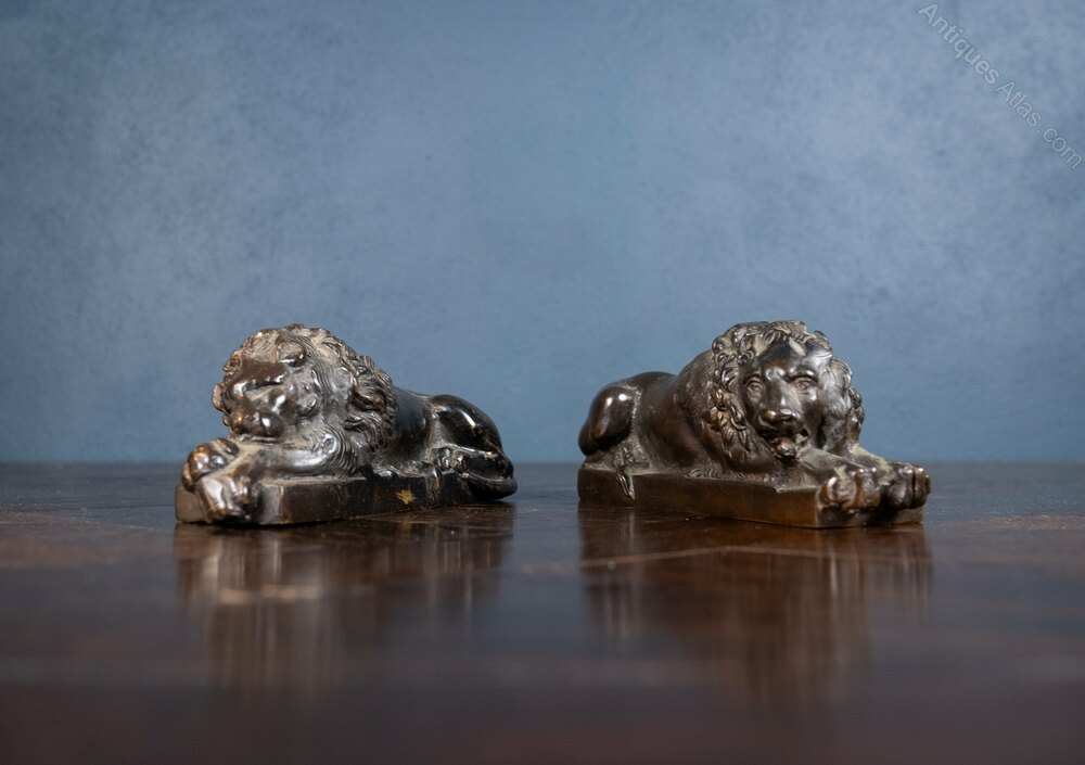 A pair of late 19th century hollow cast bronze lions after Anthony Canova.The lions show some light wear commensurate with age but overall are in a very good condition.