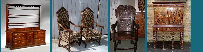 Dealer in early oak furniture and related items, and specialist restoration and carving services. Private, by appointment only