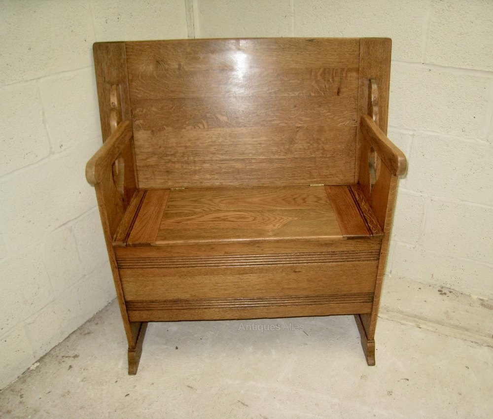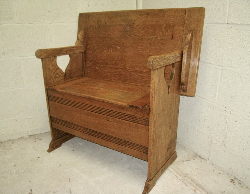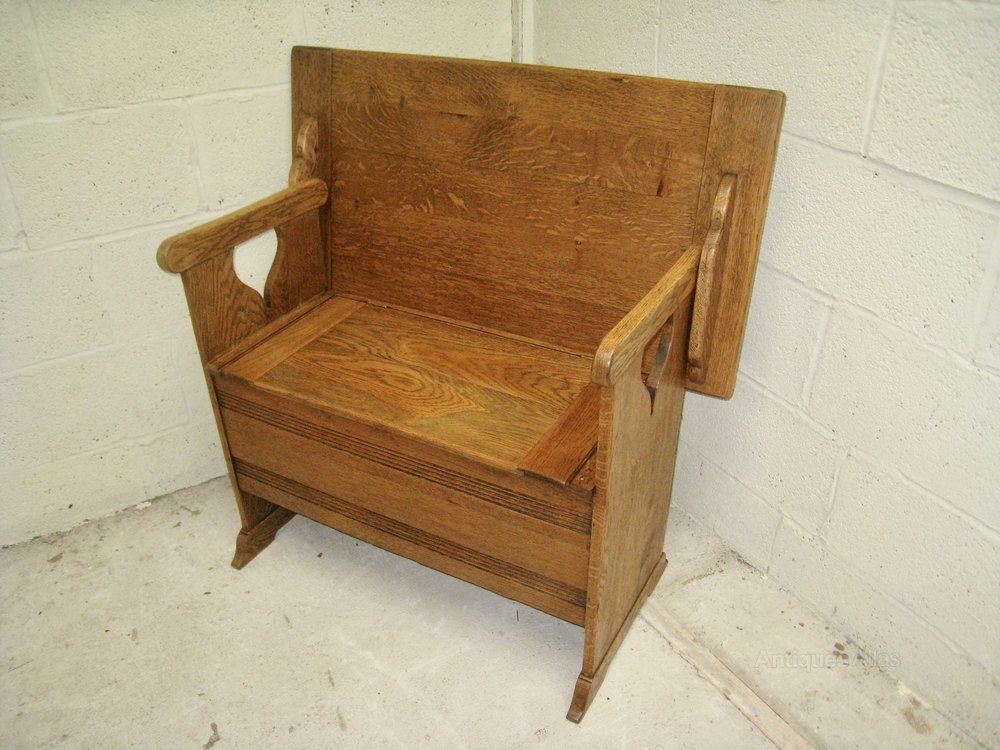 Here is an Arts and Craft Oak Monks bench, These benches were retailed by Liberty's of London and are Illustrated in there Furniture catalogue of 1907 , The bench has been carefully cleaned and polished to a warm golden oak colour and is in excellent condition through outWe have our own transport and are able to deliver our own stock throughout the UK.