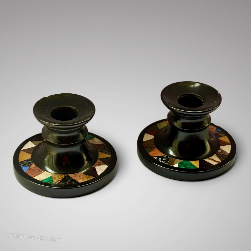 In the 19th century Ashford marble was extremely fashionable with a wide cross section of society, used for major projects in large country houses and small items in general. This continued until the source of the materials ran out in the early 20th century, hence items such as these candlesticks have become rare.