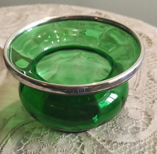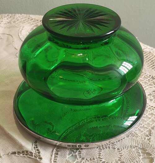 Birmingham 1902 silver rim green glass by S.SwhLTD12cm X 8cm high