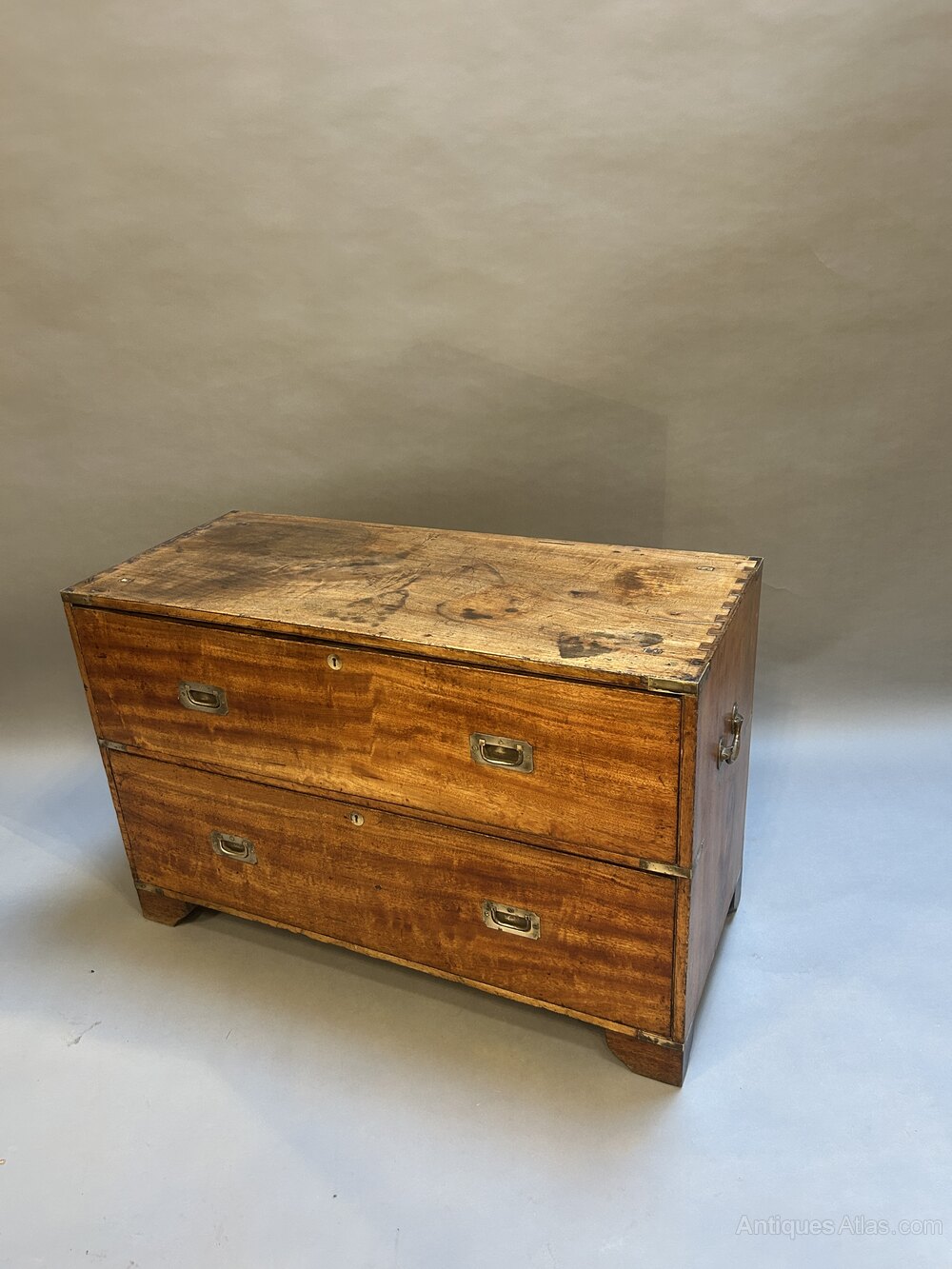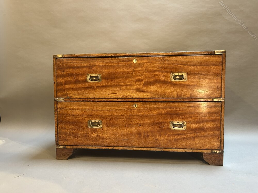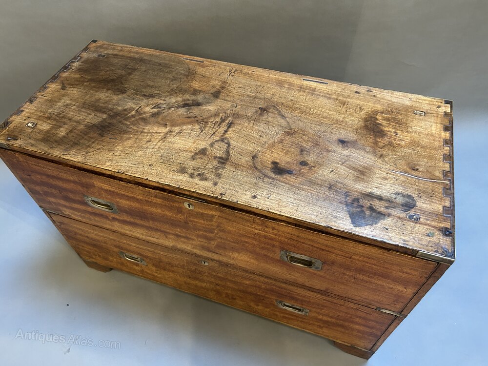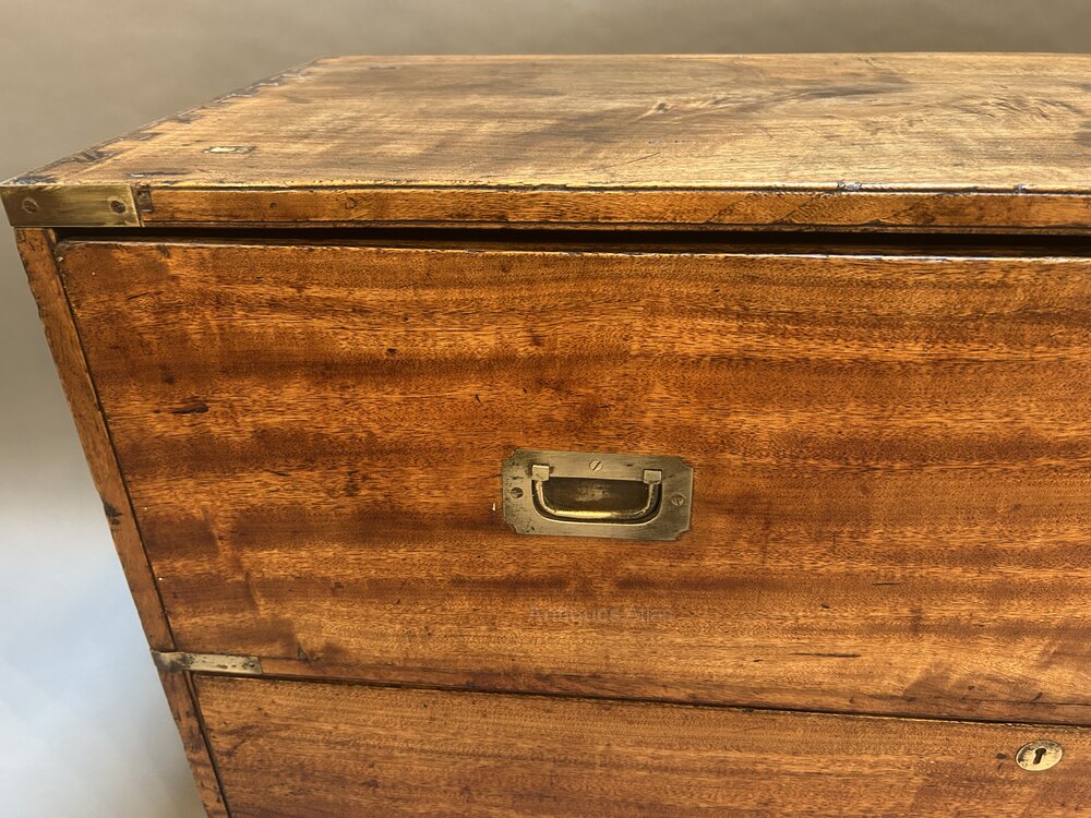 C19th Campaign Low Chest Of Drawers