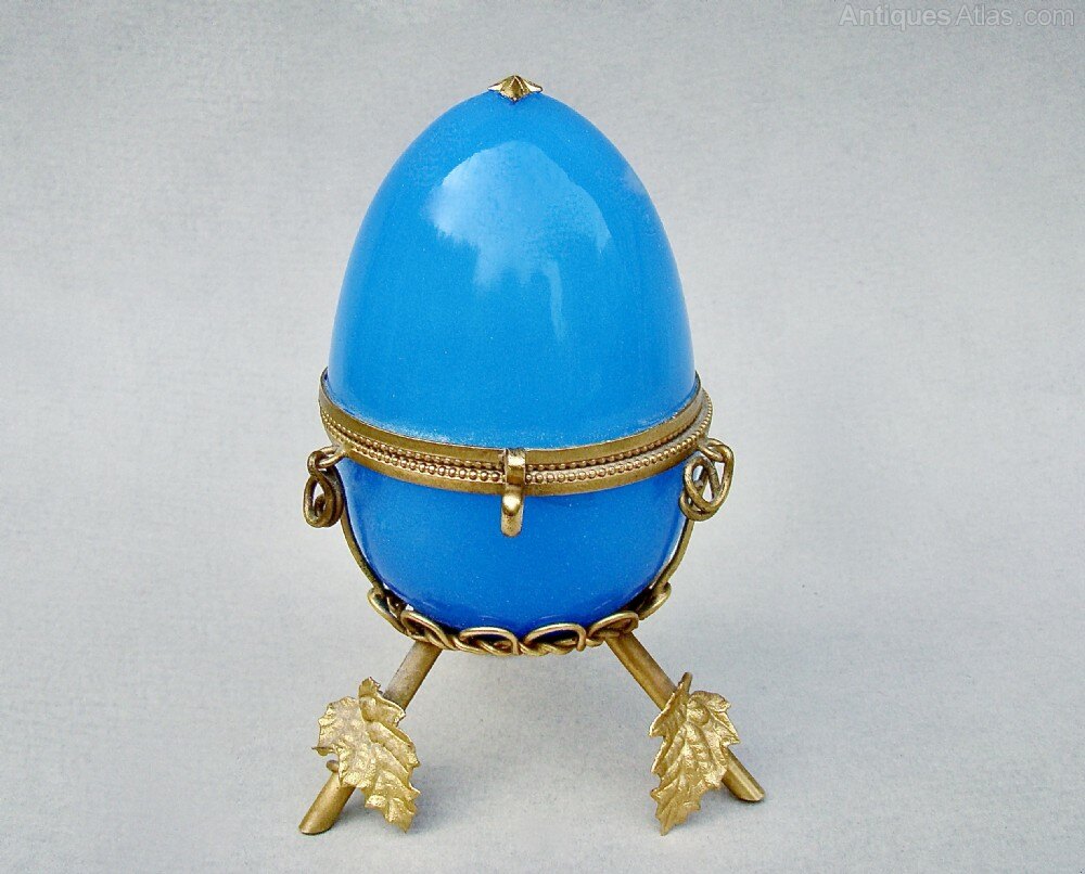 Rare French Palais Royal opaline glass egg casket
