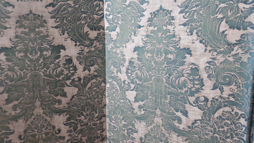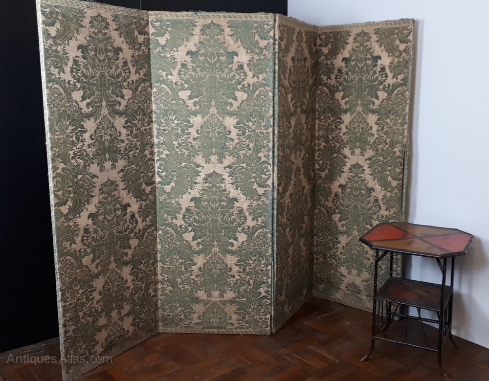 Very large 4-fold screen with Fortuny 1920s fabric