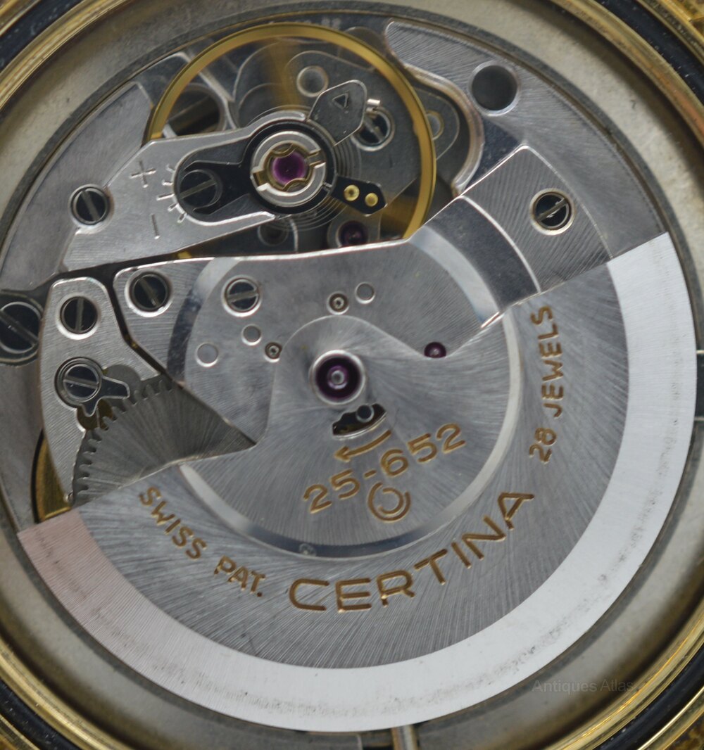 The watch is powered by a 28 jewel caliber 25 652 Certina, automatic mechanism. Circa 1960s.