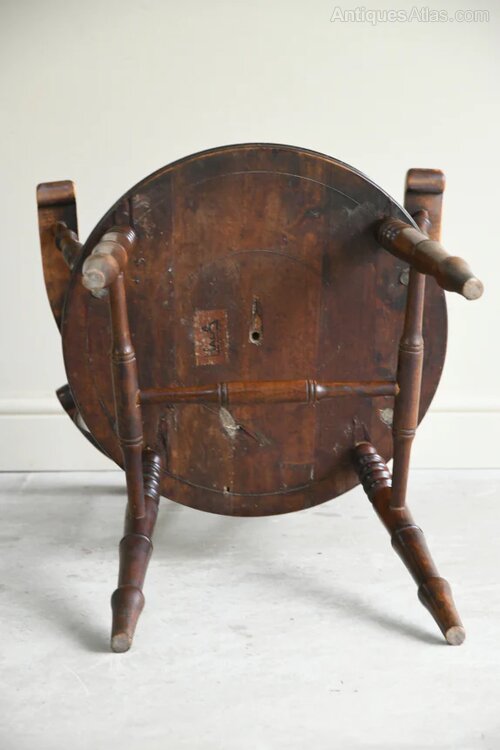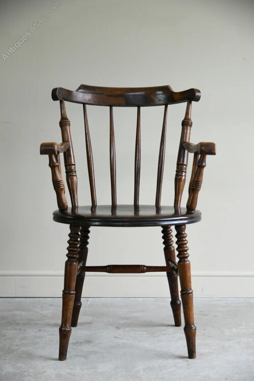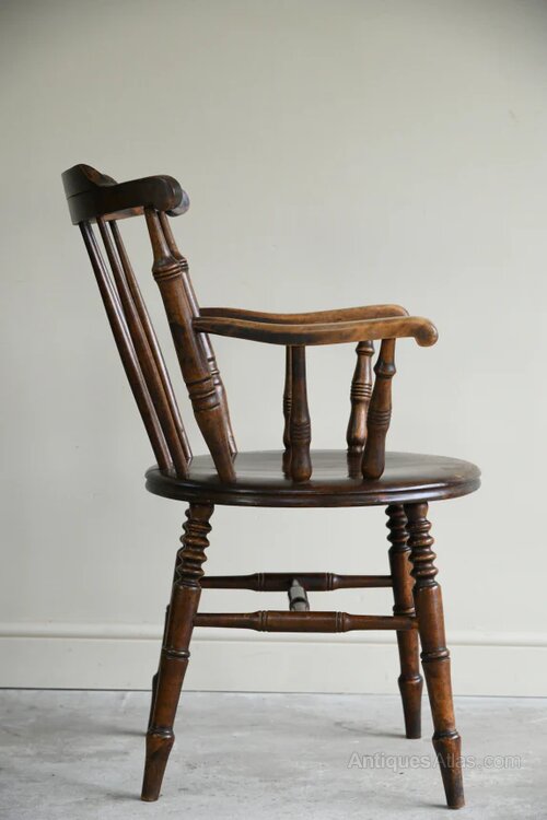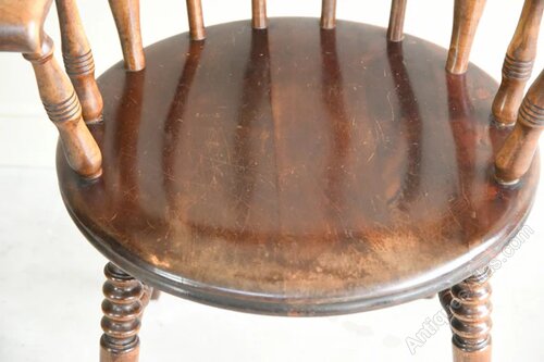 Single Stained Beech Penny Chair. Single Early 20th Century penny chair, stained beech frame with stick back and polished round seat on turned splayed legsDimensions: 57cm wide x 51cm deep x 47cm seat height x 71cm arm height x 90cm high