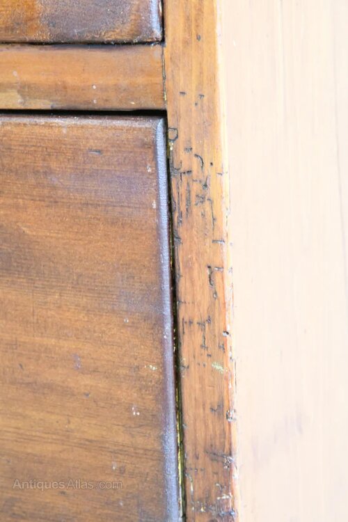 ConditionGood, general age and wear commensurate with age, some damage to the bottom drawer front, evidence of historic woodworm - this has been treated as a precaution, traces of old yellow paint
