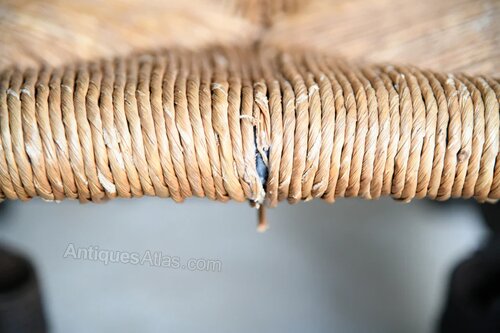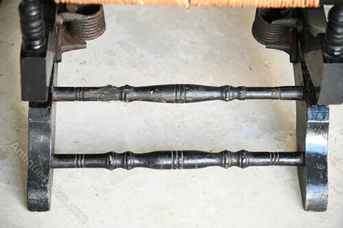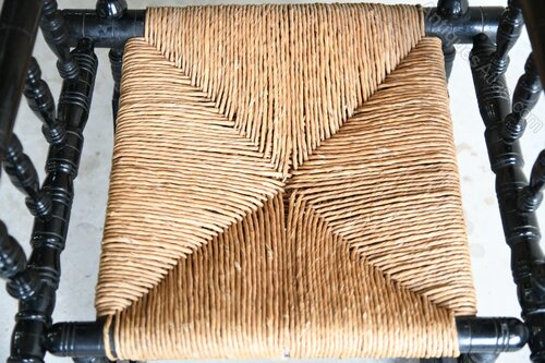 Condition: Good solid condition, later ebonised finish to the frame, minor damage to the rush along the edge of the seat