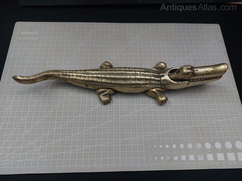 Vintage Large Heavy Brass Crocodile Nutcracker
