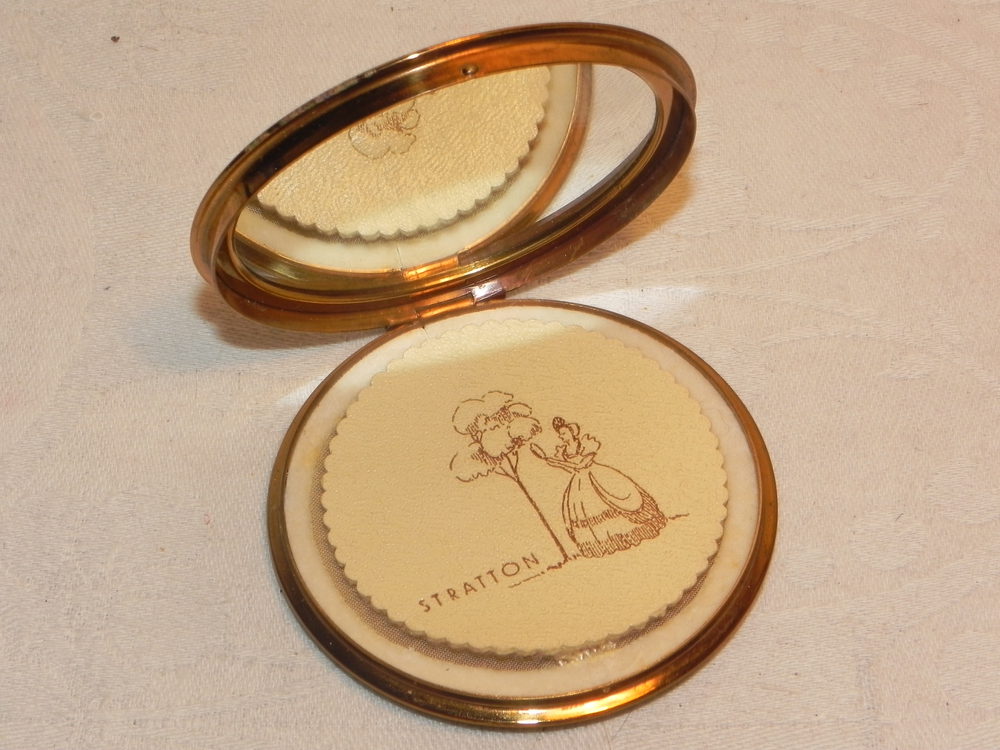 Vintage 1940 Enamel Stratton Powder Compact & Puff