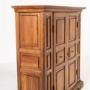 These cabinets have glazed upper sections with only one central astragal. Inside this section in each cabinet are three adjustable shelves. The lower sections containing a single shelf behind the cupboard doors and narrow drawers above. Veneered throughout in excellent quality walnut with bookmatched central panels to the doors.