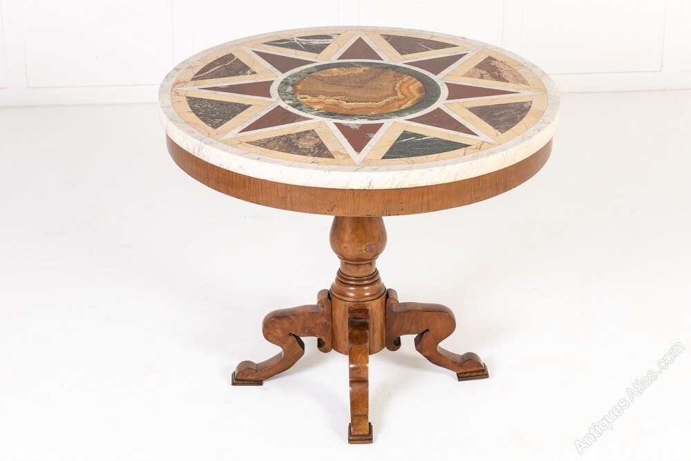 19th Century Italian Walnut Specimen Marble Top Centre TableA 19th Century Italian Walnut Specimen Marble Top Centre Table.