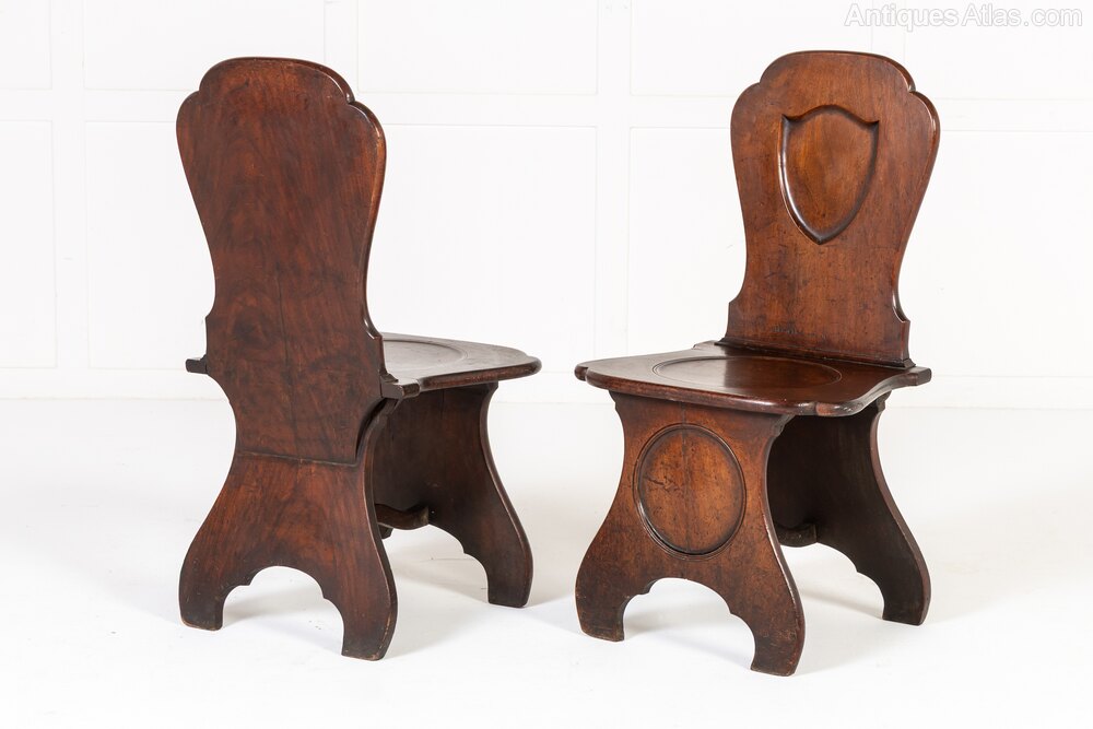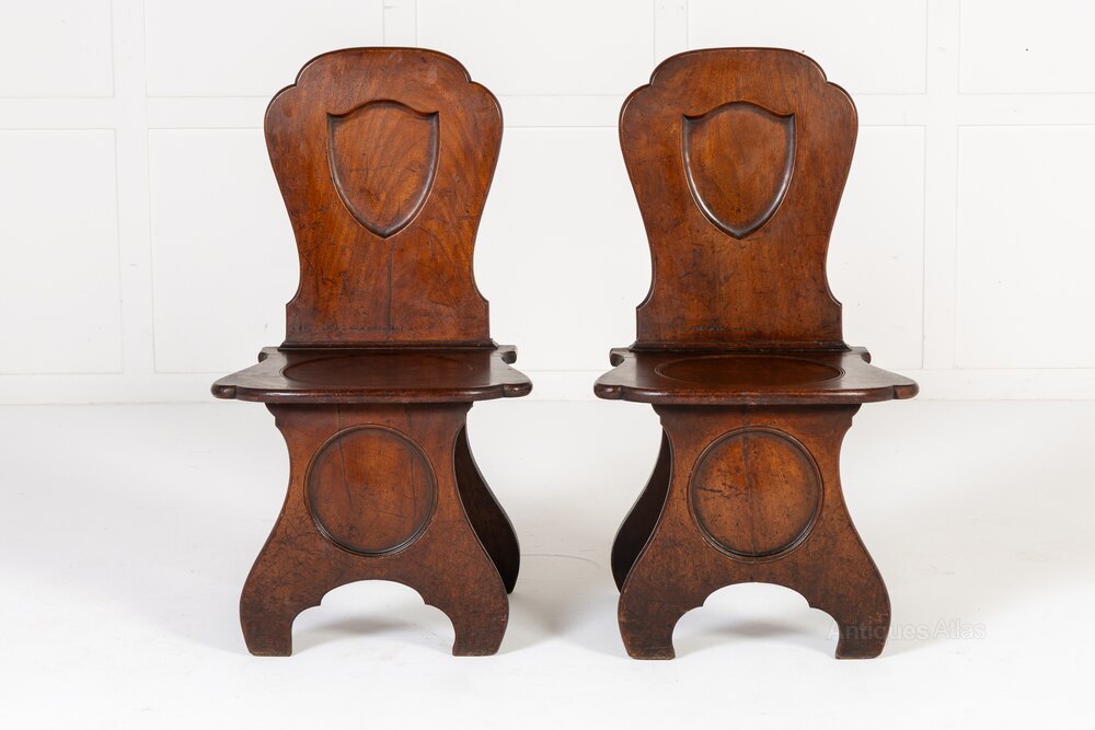 Pair of 18th Century English Hall ChairsGood Size Pair of 18th Century George III English Mahogany Hall Chairs C. 1780