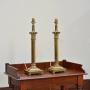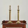 Cast brass square stepped bases to fluted columns with corinthian capitols. Wired with gold braided flex, bayonet cap brass bulb holders and PAT tested.