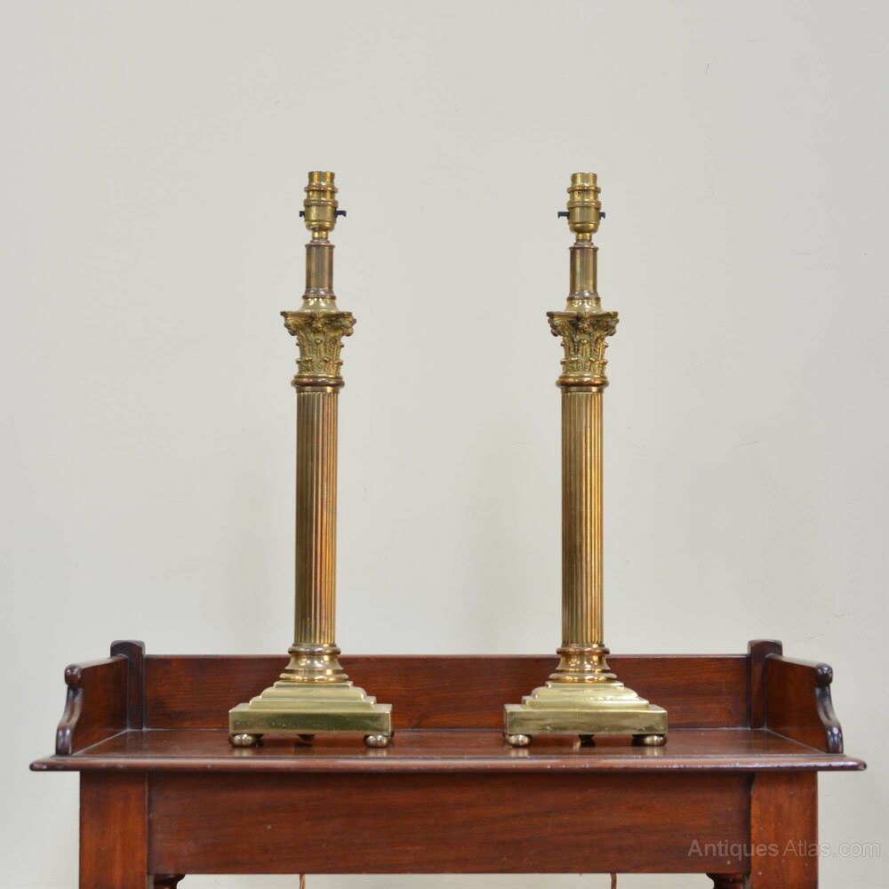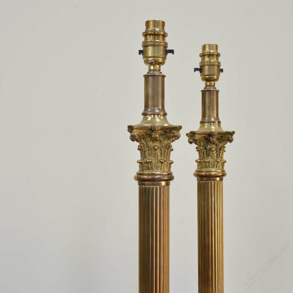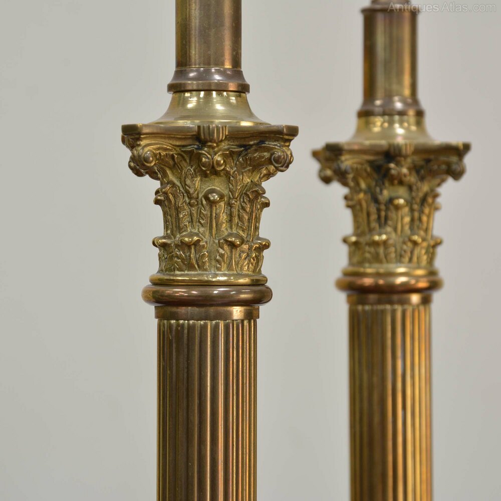 Pair Victorian brass corinthian column lampsA pair of Victorian brass lamps