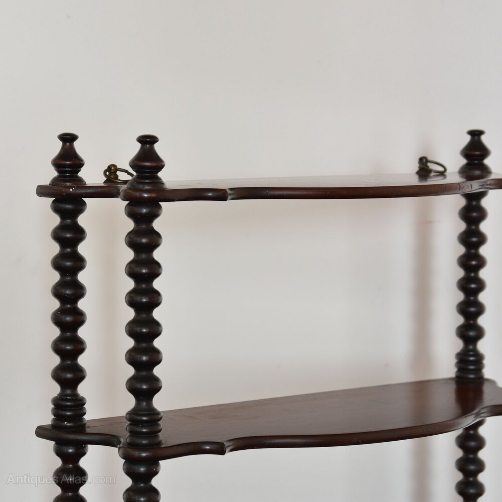 19th century mahogany bobbin shelvesMahogany hanging shelves