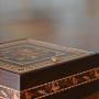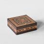 Tessellated mosaic was by far the most complicated, intricate, and desirable of the three and involved using minute tiles to form a pictorial design of geometric pattern. Up to 40 different woods were used to create the various colours and grains. The most interesting being the colour green which was created by taking wood from fallen oak trees infected with the fungus Chlorociboria aeruginascens - you can see the green tiles used in the lid of this box.