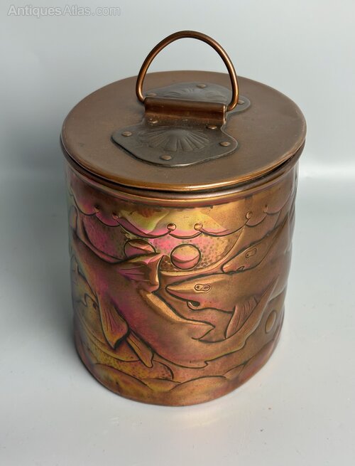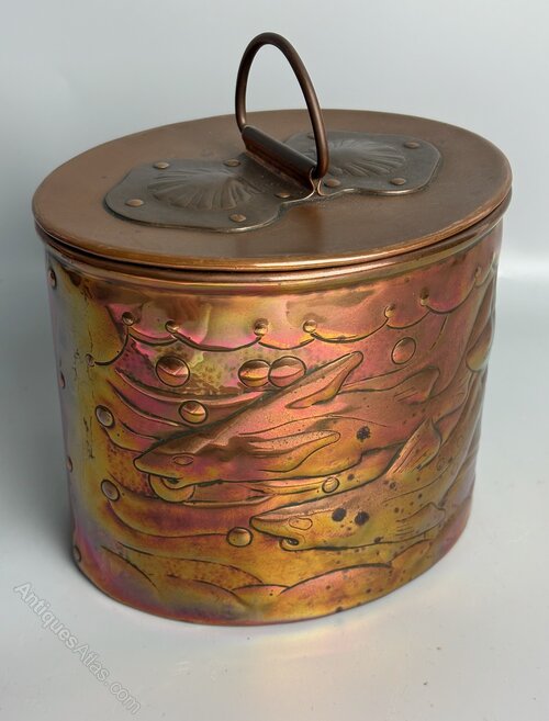 Newlyn Arts & Crafts Copper Biscuit Box Dogfish
