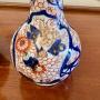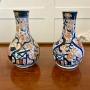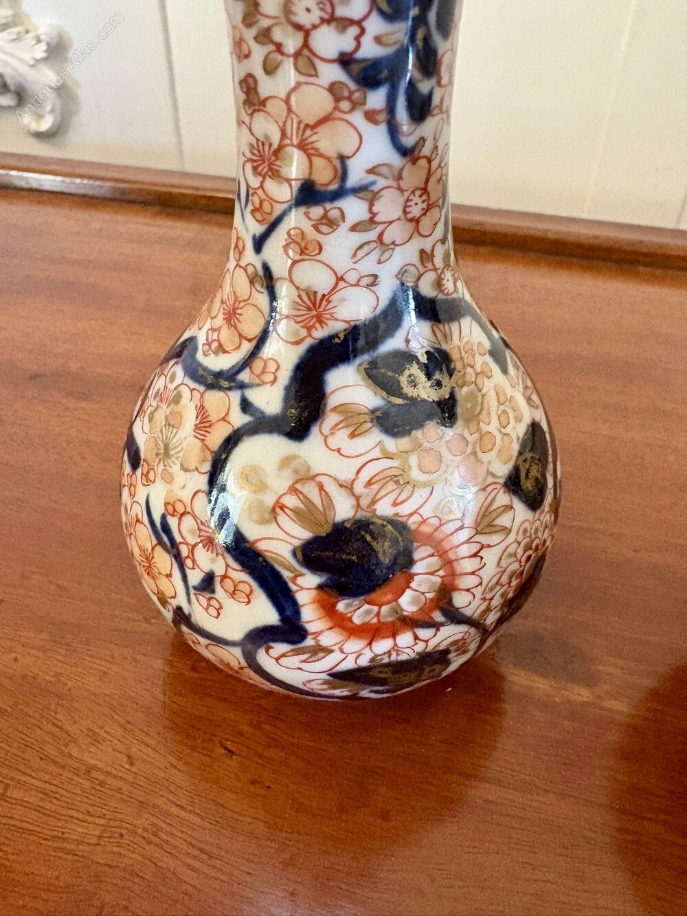 Small pair of antique Edwardian quality Japanese Imari vases having a lovely shape with wonderful hand painted panels in blue, red, white and gold colours.Quaint and in perfect condition.