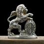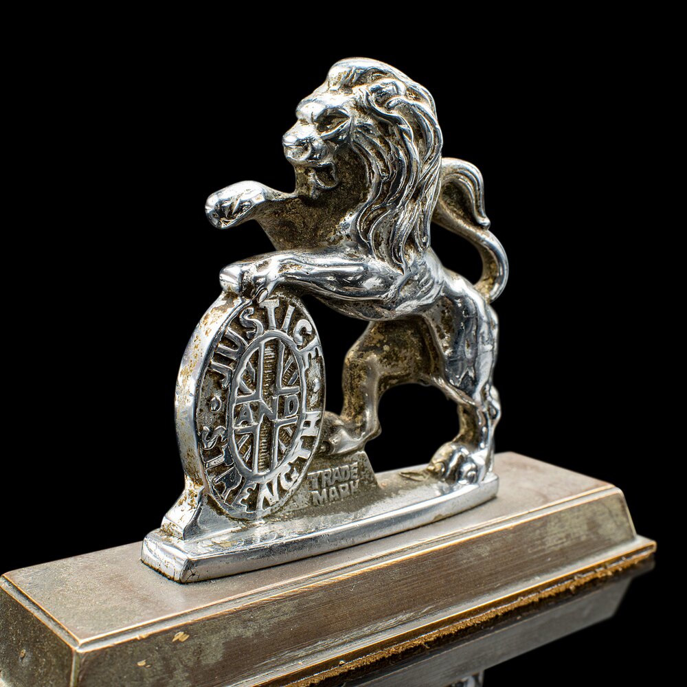 Our Stock # 25573This is a small antique lion paperweight. An English, nickel plated figure upon a bronze plinth, dating to the early 20th century, circa 1920.