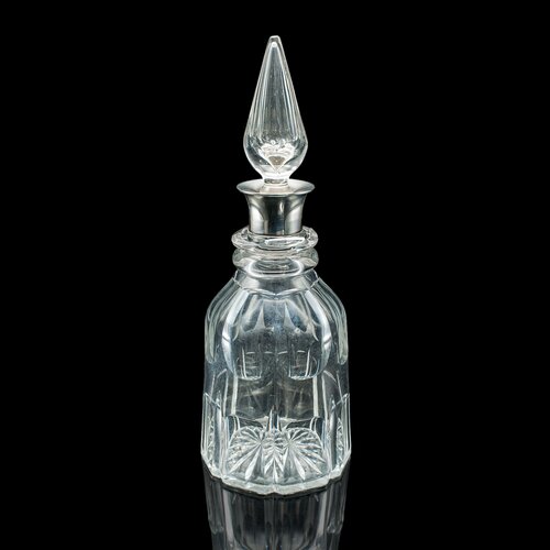 This is a delightful 1920s silver-collared spirit decanter, presenting wonderful clarity and classic period charm. Perfect for the collector or for enhancing a refined drinks cabinet. Delivered ready for the home.