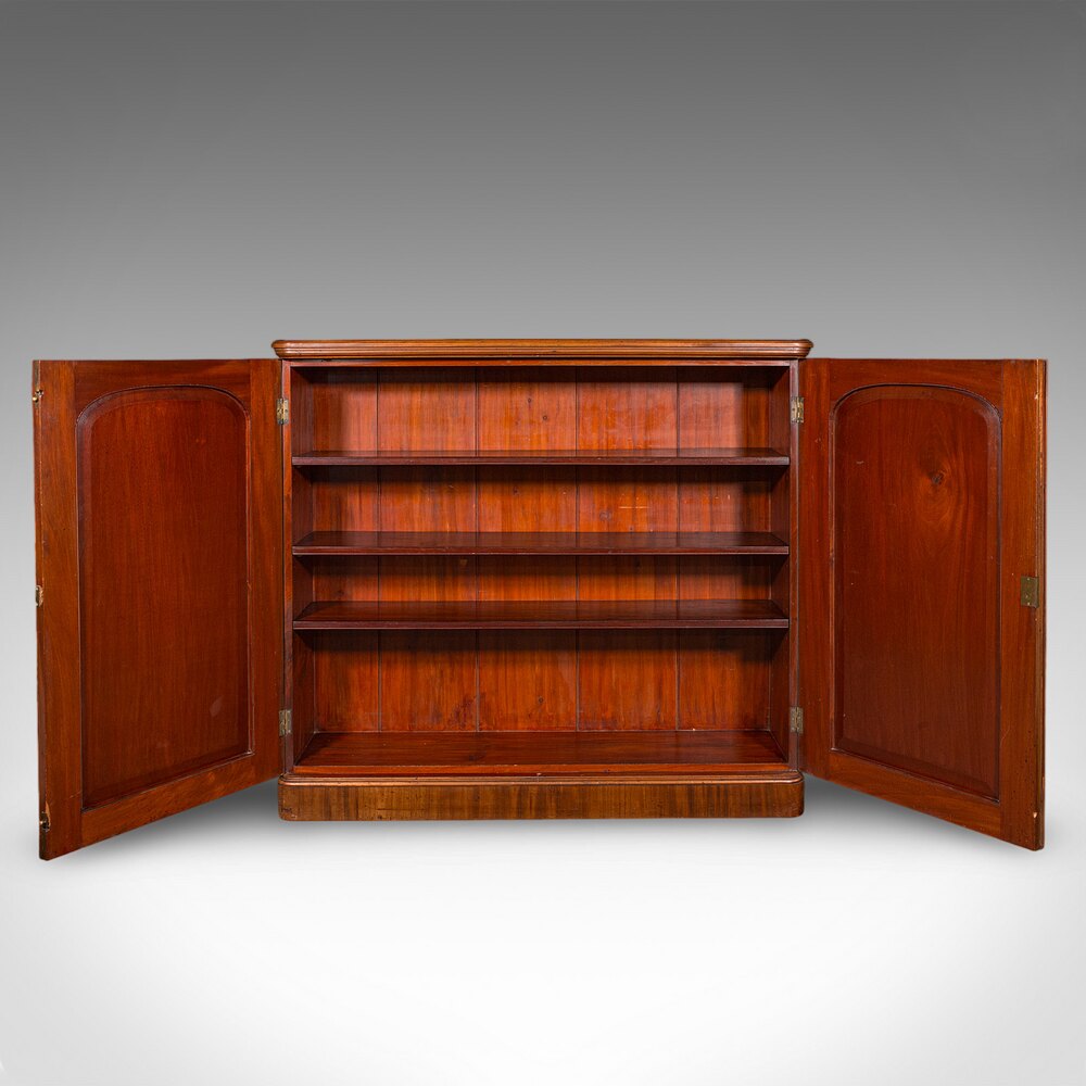 A fine, understated book cabinet offering excellent storage and period character, this charming and practical antique mahogany bookcase, presents superb craftsmanship and warm, inviting colour. Ideal for collectors, decorators or refined interior schemes. Solid joints and construction, delivered ready for the home.