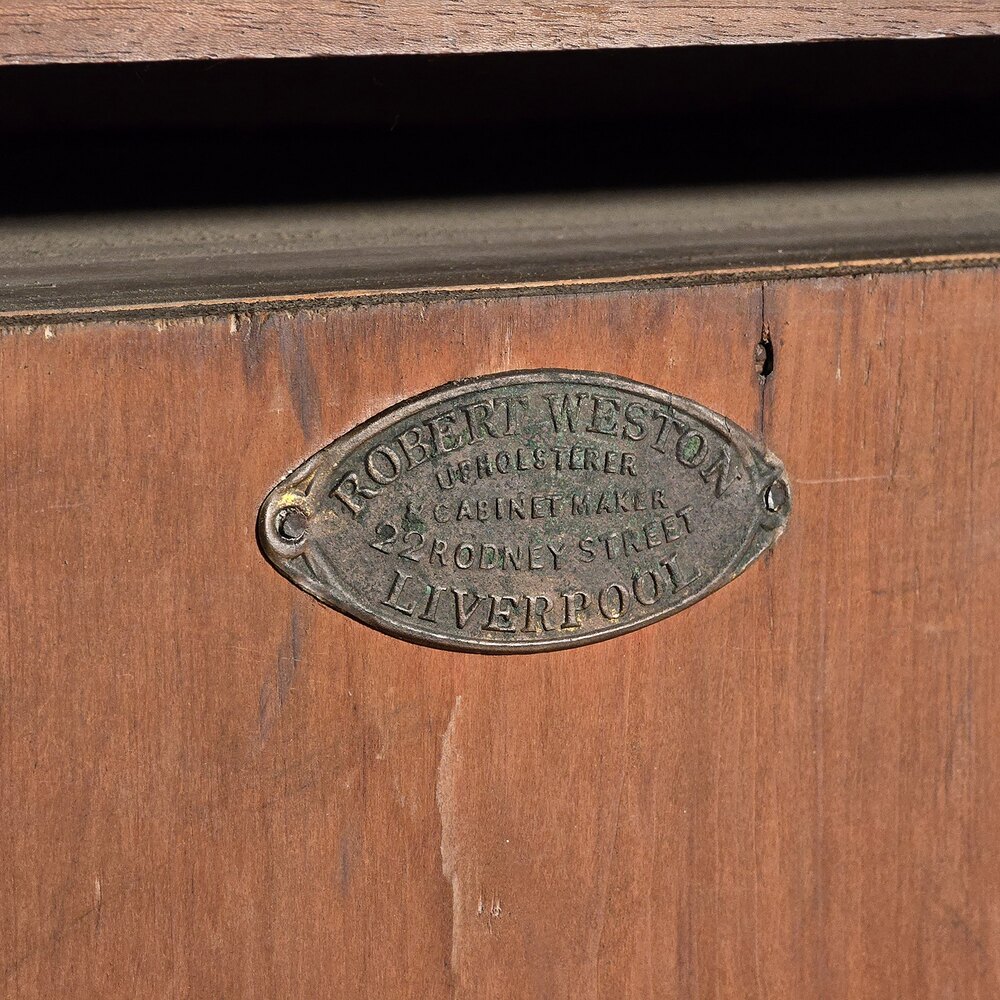 Maker’s plaque to the rear for Robert Weston of Rodney Street, Liverpool