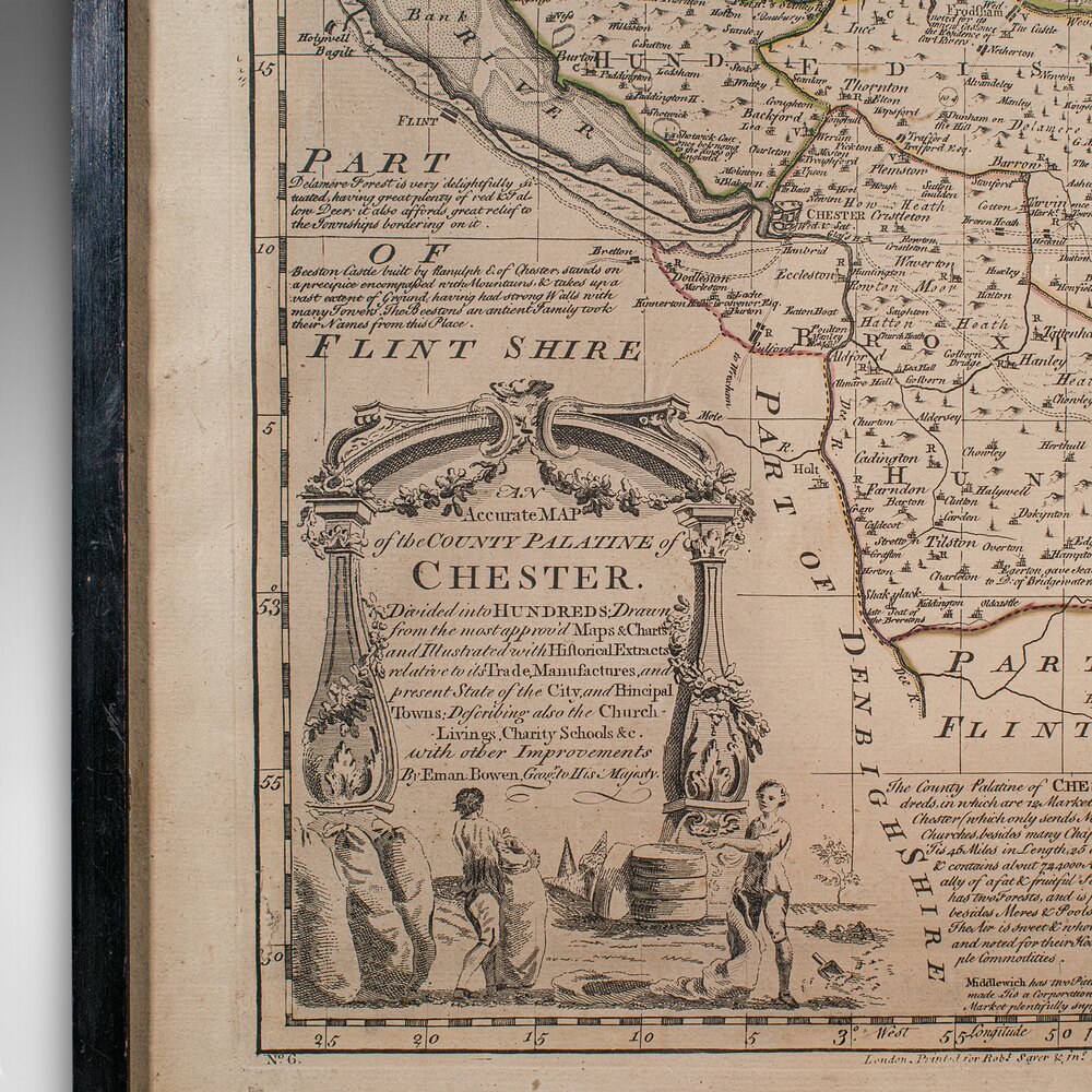 Our Stock # 25689This is an antique Palantine of Chester county map. An English, framed atlas engraving of Cheshire by Emanuel Bowen, dating to the 18th century and later, circa 1770.