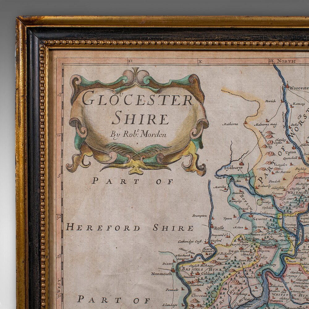 Our Stock # 25793This is an antique county map of Gloucestershire with atlas folio. An English, framed engraving of cartographic interest By Robert Morden, dating to the late 17th century and later.