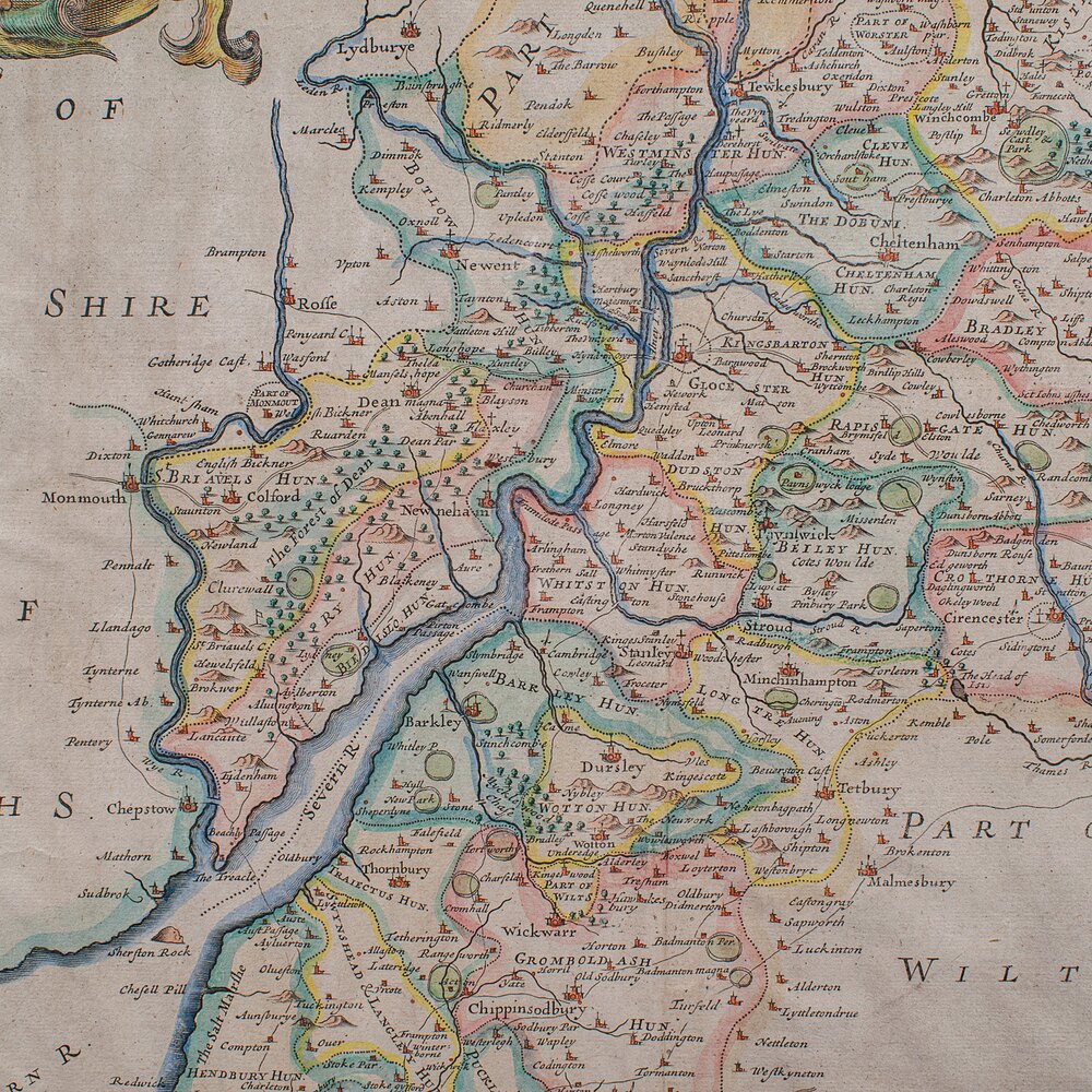 Reverse hosts a folio with the relevant atlas section for Gloucestershire as it stood in the late 17th century