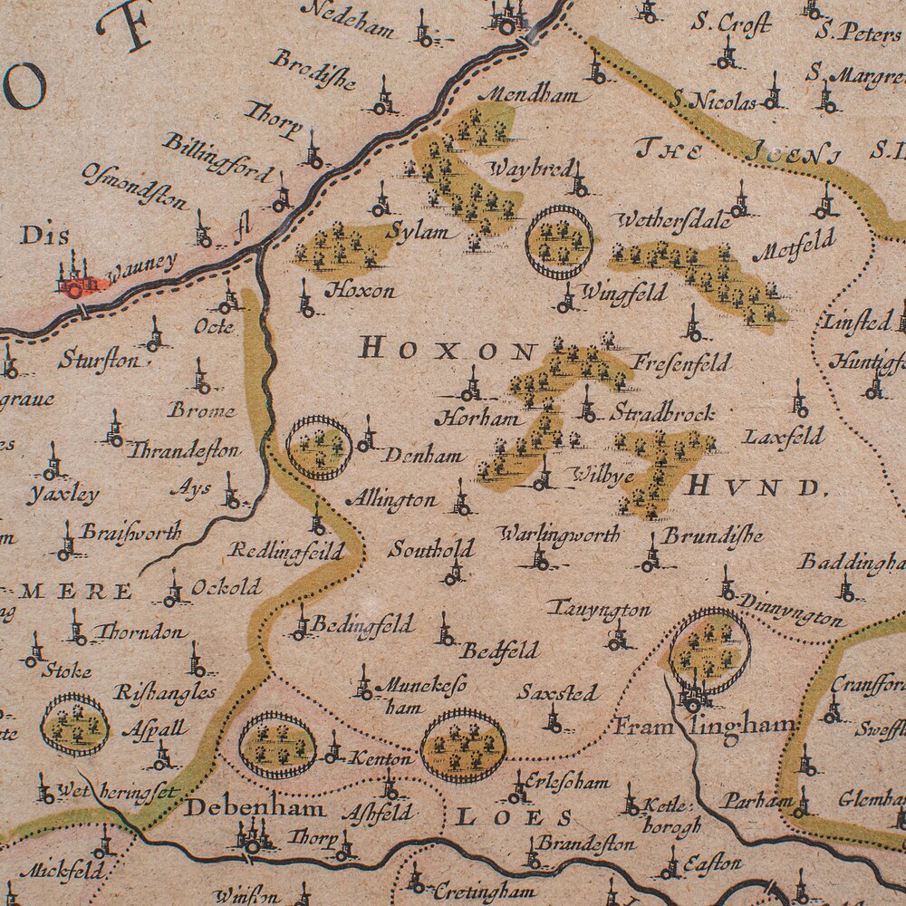 This is a fascinating antique county map of Suffolk, with superb detail and mid-17th century cartographic interest. Delivered ready to display.