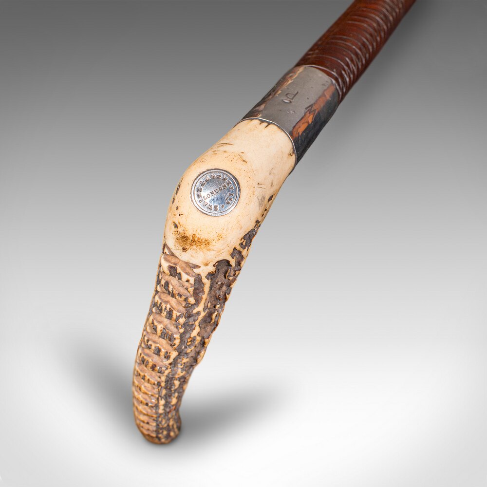 This is an exceptional antique hunting whip, with fine materials and craftsmanship from a noted London specialist. Delivered ready to display.