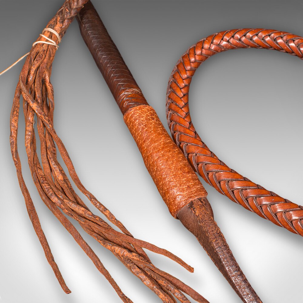 9' Long Antique Hunting Whip, English Leather