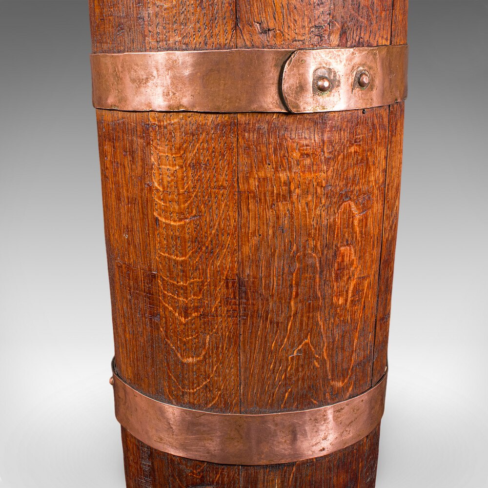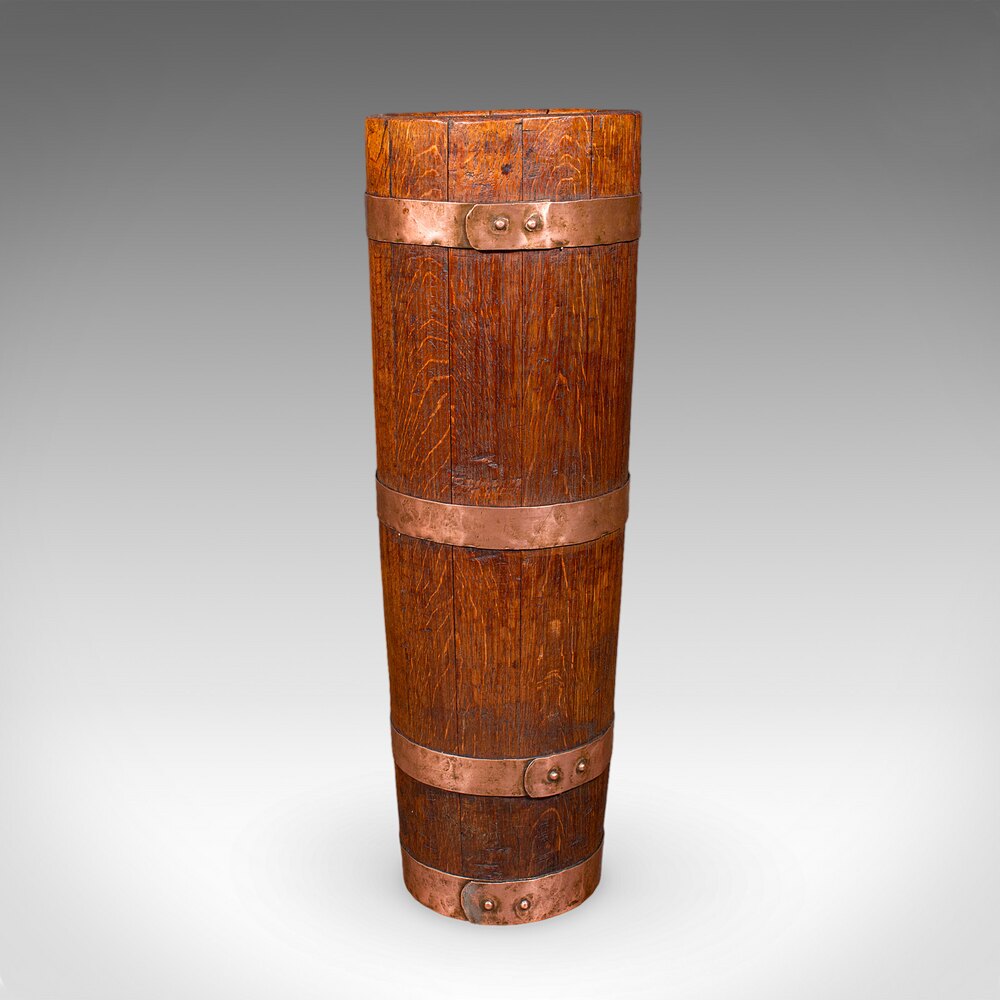 Our Stock # 25982This is an antique coopered stick loop. An English, oak and copper country house umbrella stand, dating to the late Victorian period, circa 1900.