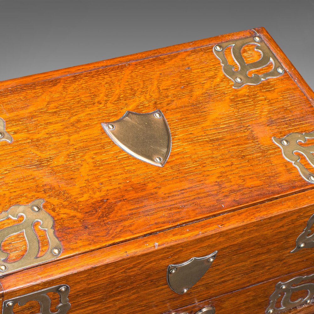 Antique Smoker's Box, English, Oak, Brass, Cigars