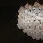 The chandeliers are technically extremely virtuosic. Each of the bubble elements has to be blown by hand in to a mould and then assembled around the central frame. The decoration on the glass elements the result of the patterns on the mould itself meaning that the decoration is very consistent and reflects the light similarly from piece to piece.