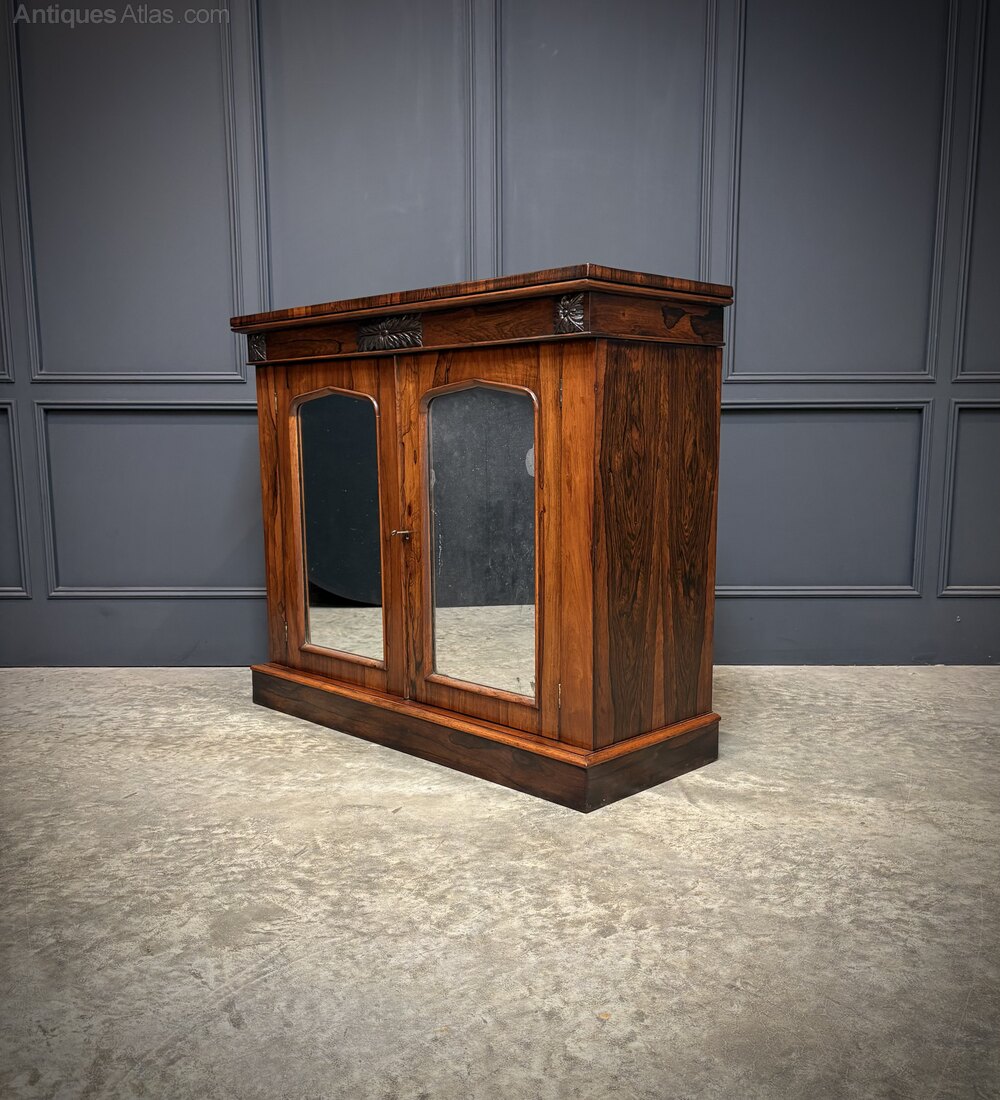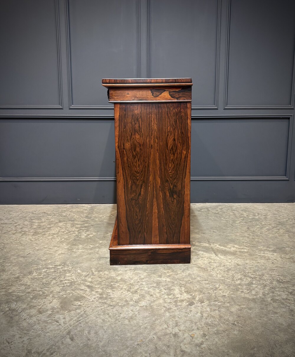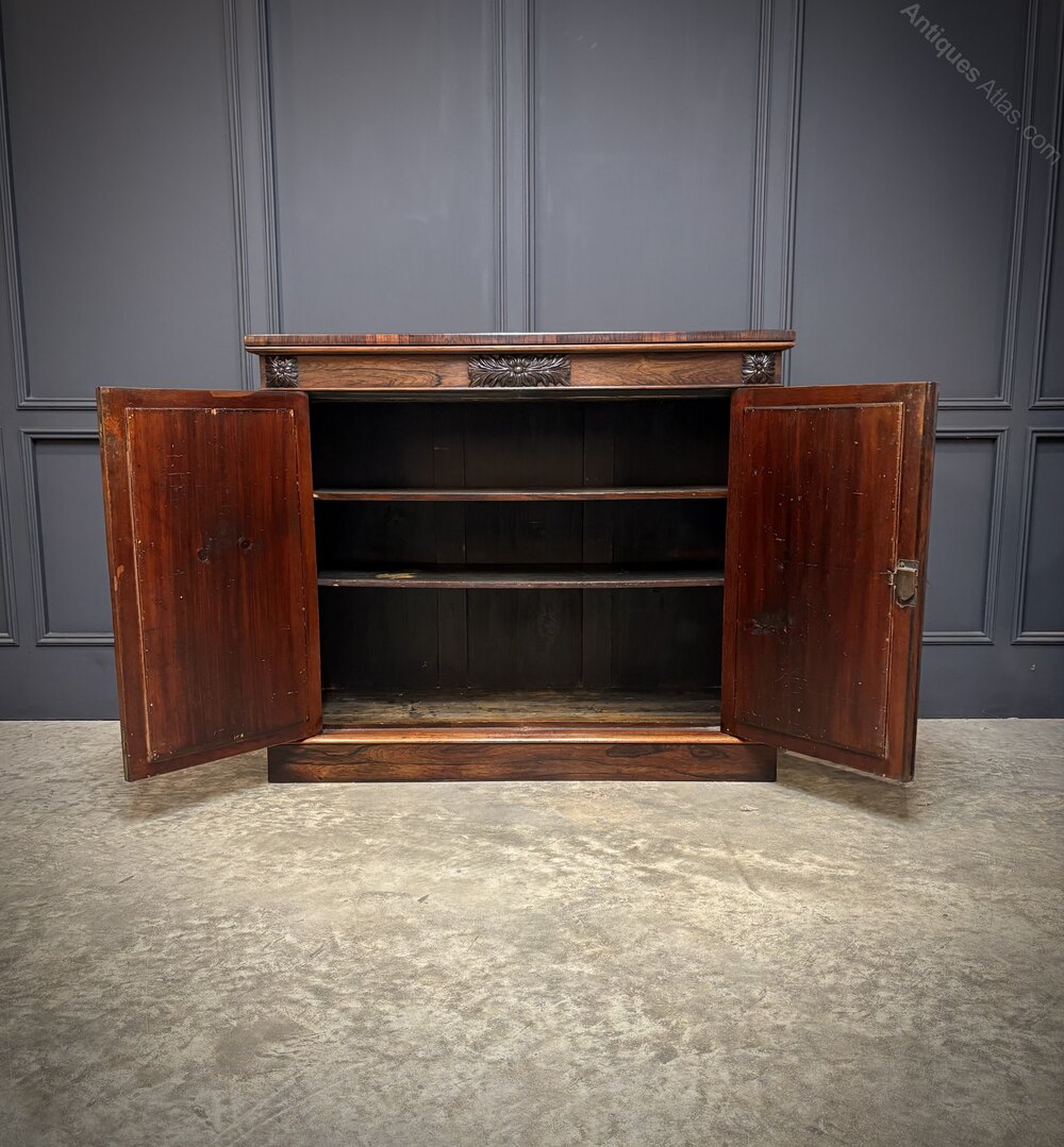 An exceptional William IV rosewood side cabinet, dating to circa 1825, presented in excellent showroom condition.Featuring beautifully figured rosewood veneers, richly coloured and expertly polished to enhance the natural grain and depth of tone.