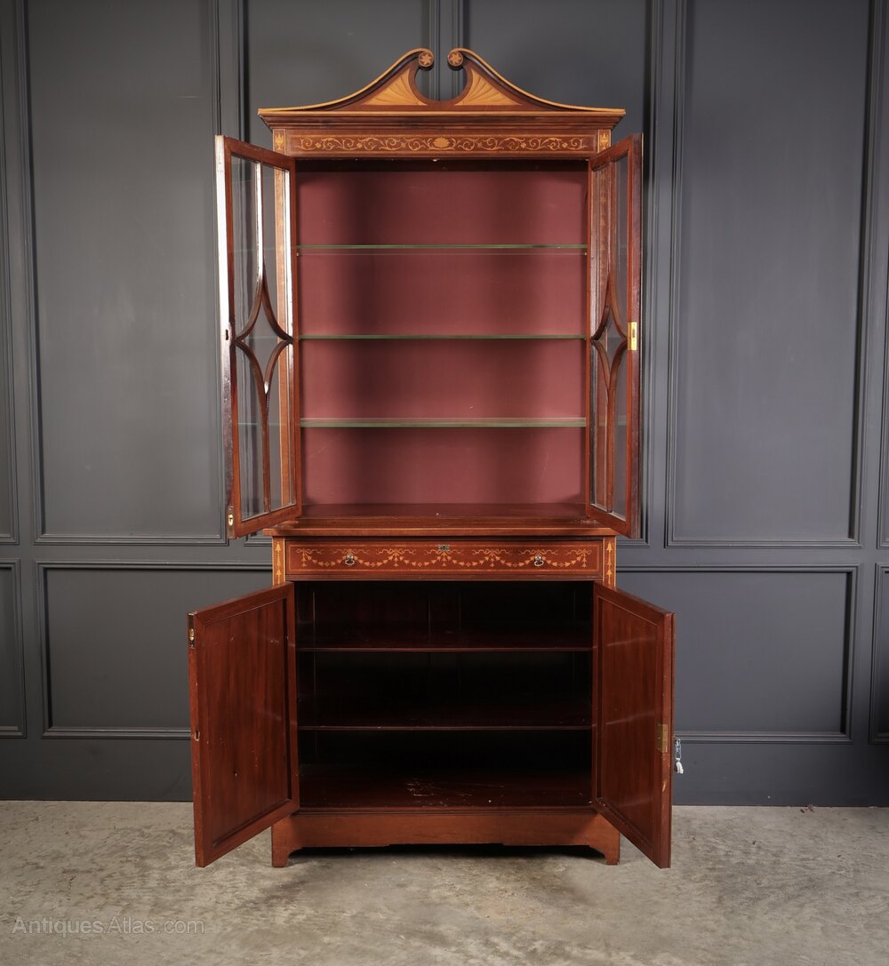 Marquetry Inlaid Mahogany Glazed Cabinet Bookcase
