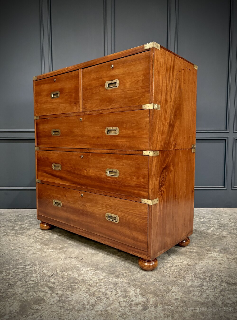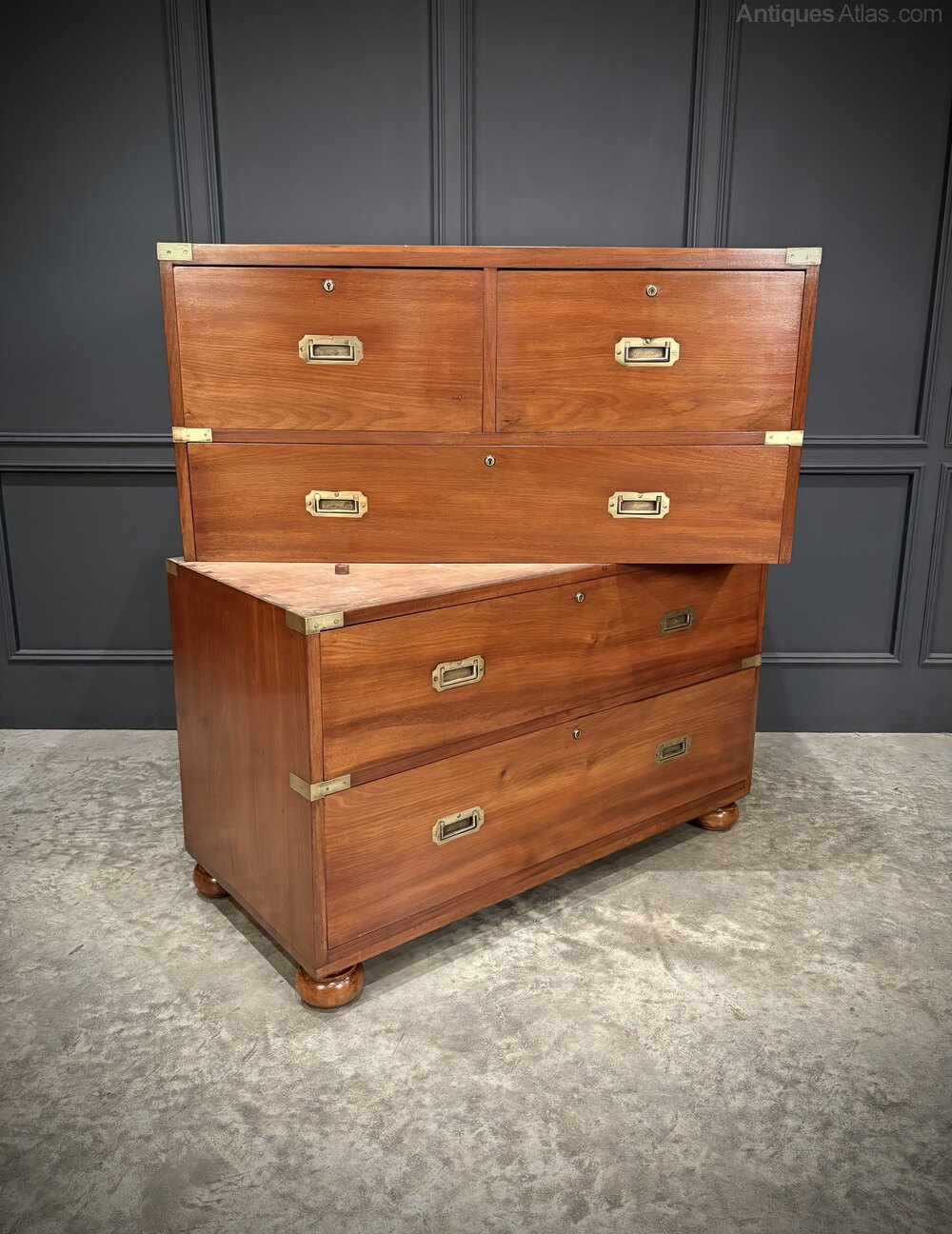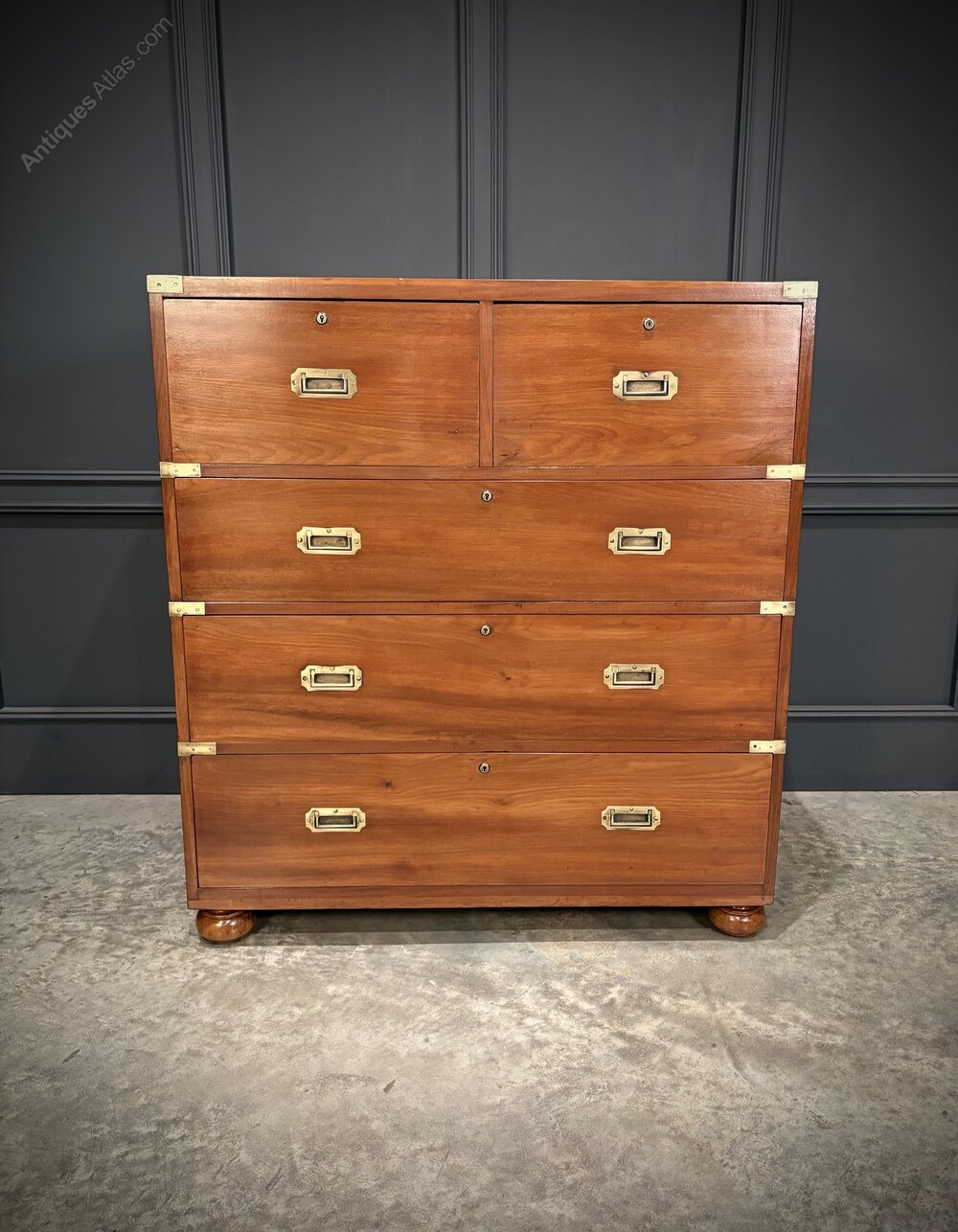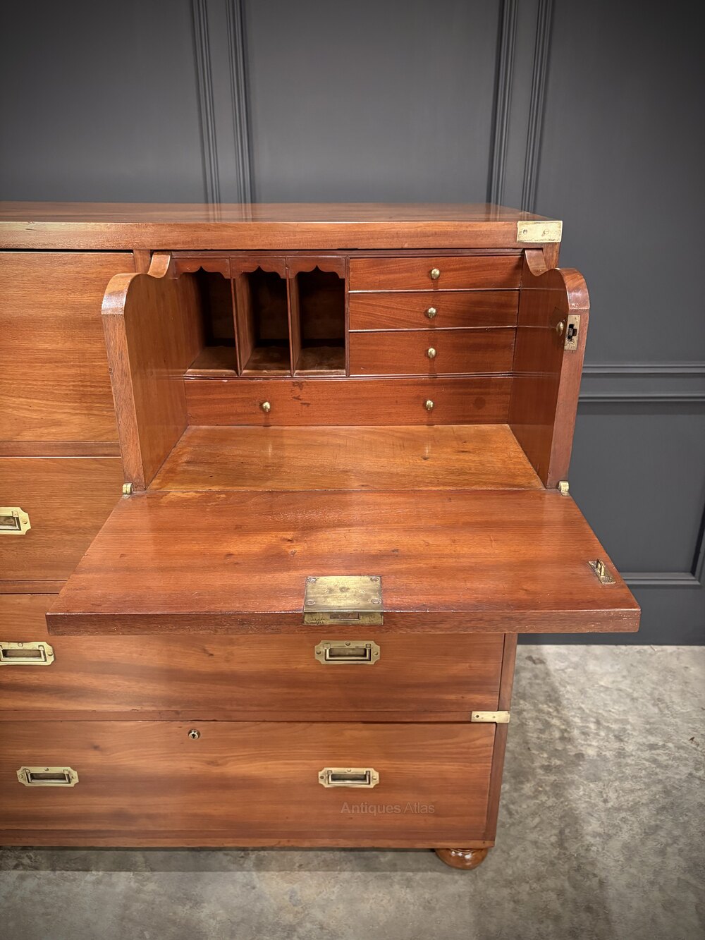 A fine 19th-century Victorian military campaign secretaire chest, crafted in rich mahogany with brass fittings.Made in two sections for portability—a defining feature of campaign furniture used by British officers.