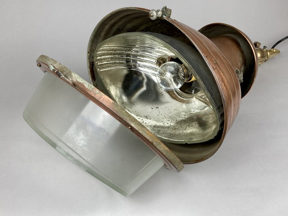 A Rare Art Deco Period, Copper and Brass Industrial Pendant Lamp.Buyers please note - I have four of these terrific lamps - click on my other listings. Priced at £445 each (including UK packing and posting) with a discount available for multiple purchases.
