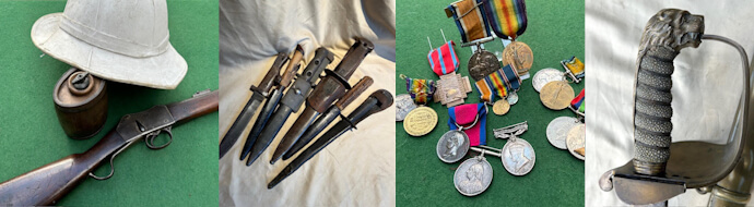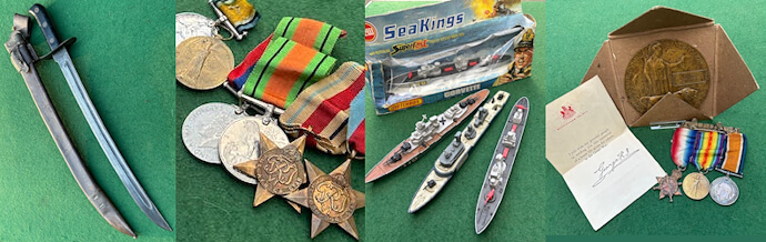 I mainly deal in antique military antiques; medals, equipment, pictures, documents and in particularly edged weapons such as swords, bayonets and trench knives. I also deal in other items such as antique toys and collectables. Private dealer - by appointment only between 9am and 6pm Monday to Friday. United Kingdom customers only please.