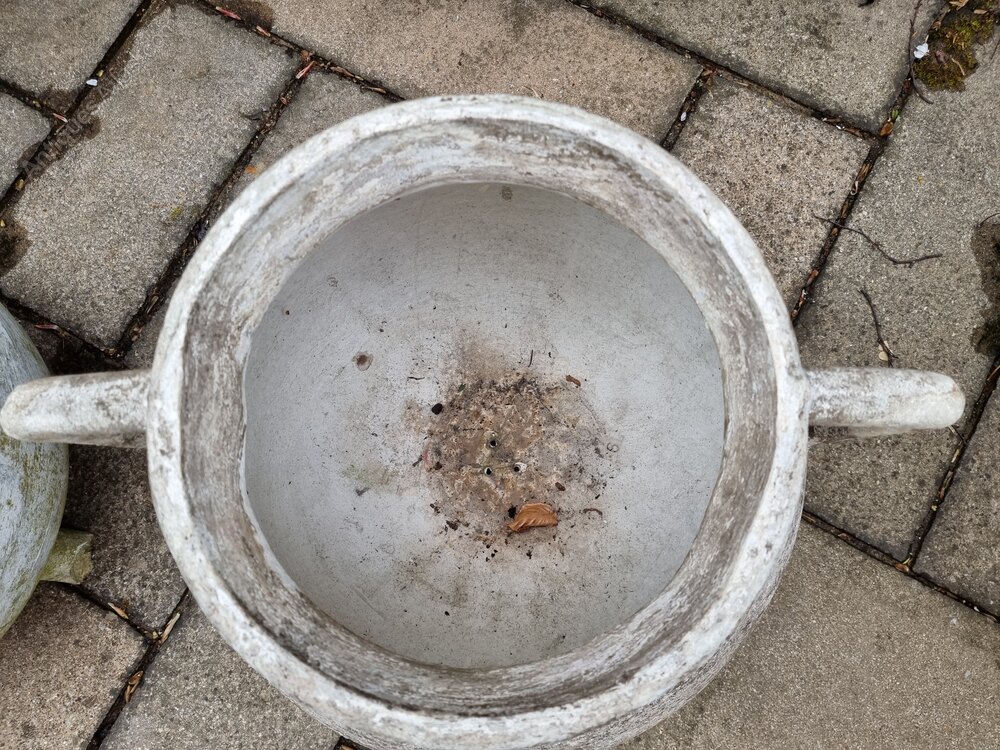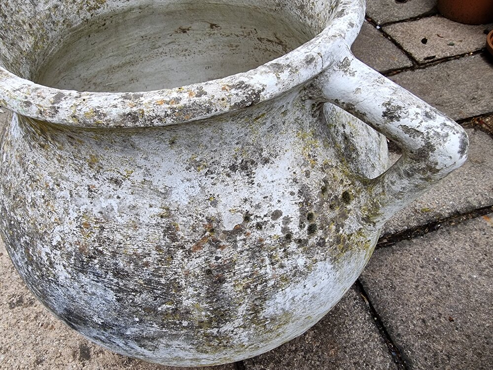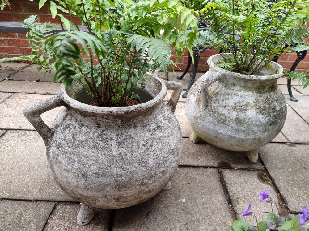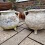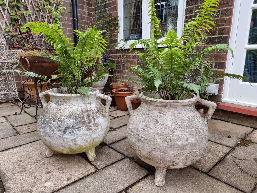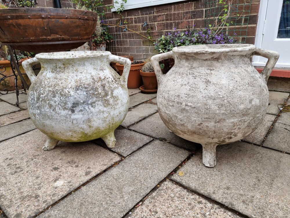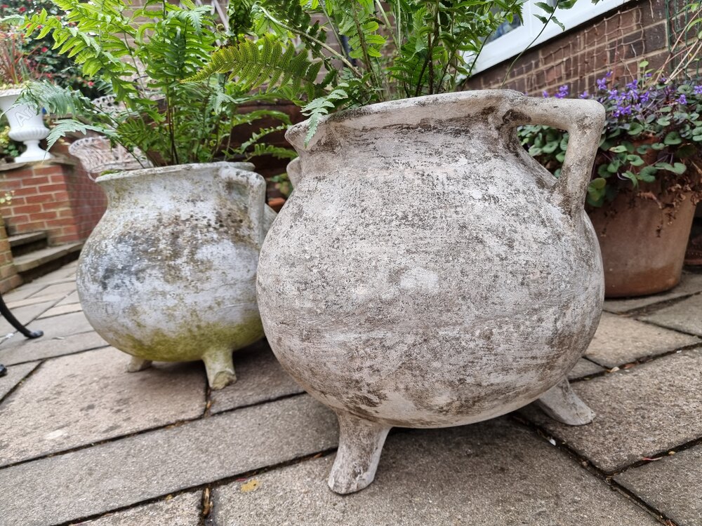 REDUCED...Retirement Sale!...REDUCEDWonderful shaped Willy Guhl European garden pots circa 1960. Willy Guhl was born in 1915 and was a pioneering Swiss furniture designer and one of the first industrial designers in Switzerland. These pots have great patina, and have drainage holes to base.