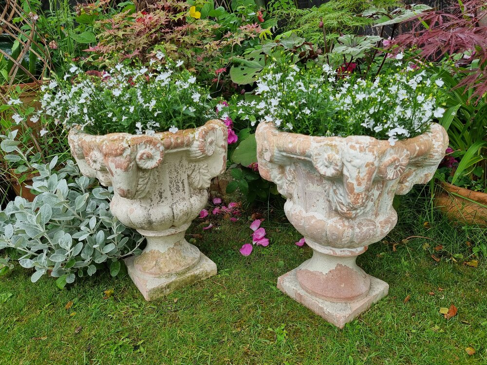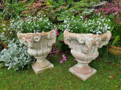 Pair of 19th Century Terracotta Rams Head Urns