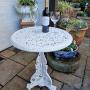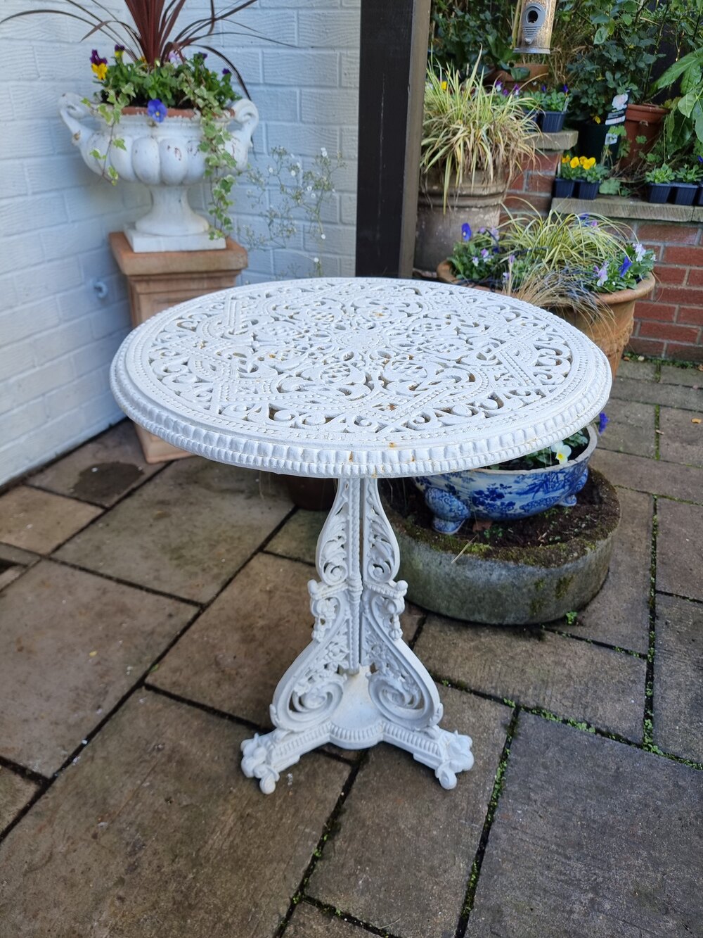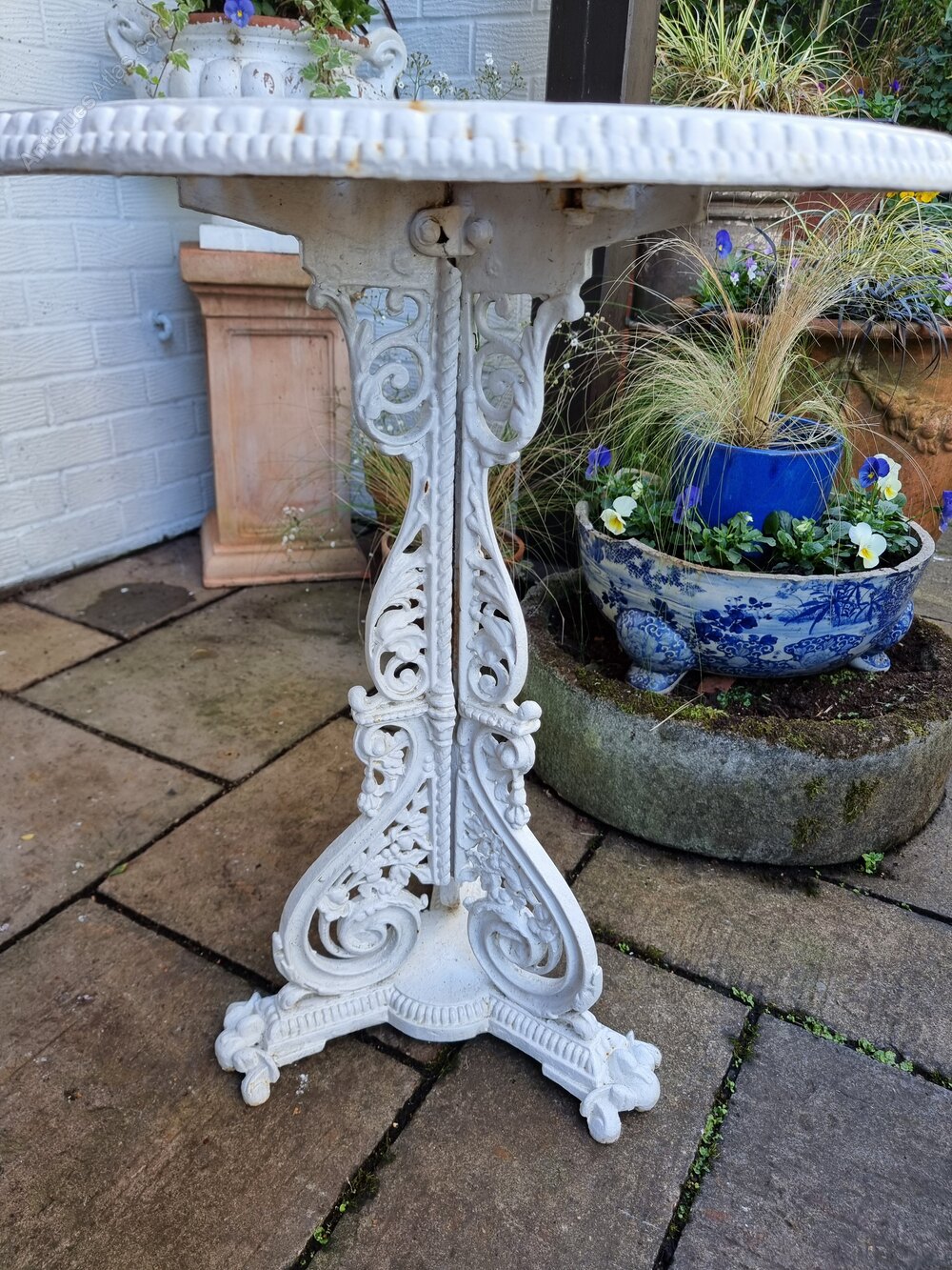REDUCED...Retirement Sale!...REDUCEDAttributed to Coalbrookdale, this heavy cast-iron table carries the pre-1884 lozenge date stamp and is a sought after design by Christopher Dresser.