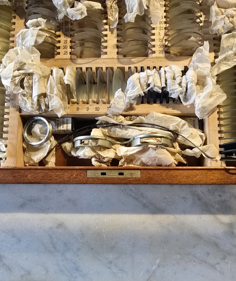 Opticians Examination Set dating from the 1890s. The set appears to be in practically mint condition. Exquisite case also.Dimensions are approximate.
