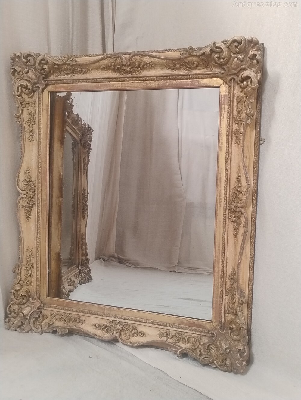 A super pair of antique parcel gilt wall mirrors dating to 1880.Finished in their original off white gesso, with water-gilded inner slips.