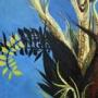 A large and beautiful vintage oil painting by Keith Gretton b.1934 . This oil on board painting is signed and dated 1957.It is titled “Joyous Spring Growth” , it is beautifully executed and depicts a wonderful flowering plant, set on a vivid blue background.