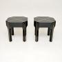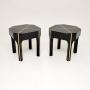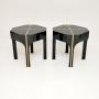 A fantastic pair of vintage Italian brass inlaid side tables, dating from around the 1970-80’s.The quality is outstanding, they are large, impressive and extremely well made. They are made from black laminate with inlaid solid brass strips and solid brass feet caps.