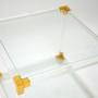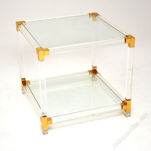 A stylish and very well made vintage Italian Lucite and glass coffee / side table. This was made in Italy, it dates from the 1970’s.It has a thick, clear acrylic frame with brass plated trim, and two glass tiers.