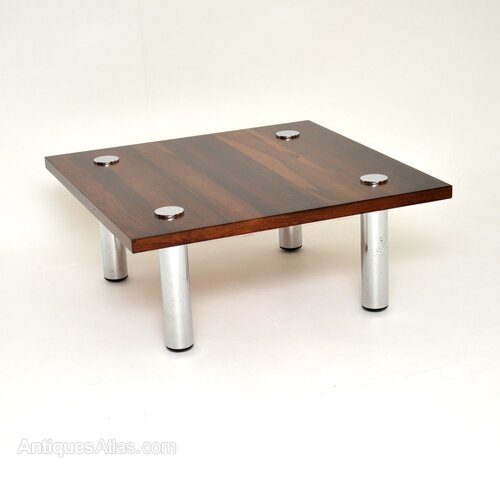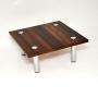 A smart and stylish vintage rosewood and chrome coffee table by Pieff of Worcester. This was designed by Tim Bates, it was made in England and dates from the 1960-70’s.It is of exceptional quality and has a fantastic design. The square rosewood top has incredibly beautiful grain patterns, it stands on chunky chrome legs which attach right through the top with chrome caps.
